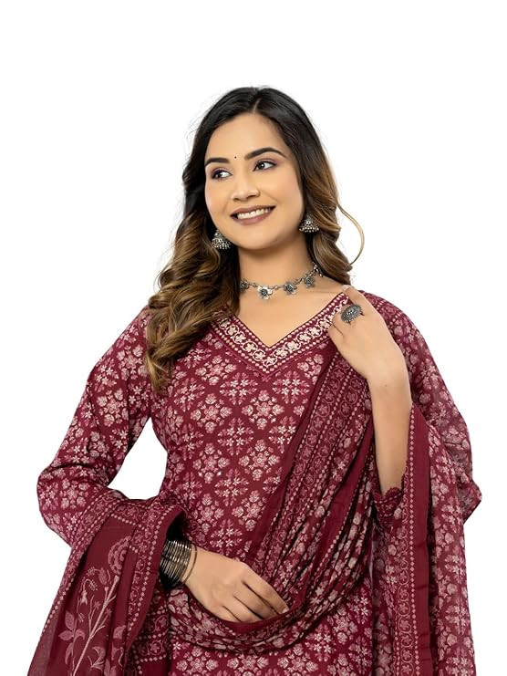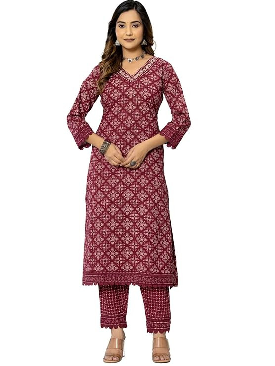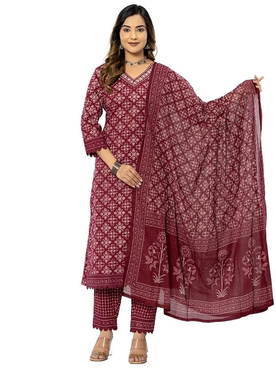Amayra Women's Cotton Printed Straight Kurta with Pant and Dupatta Set