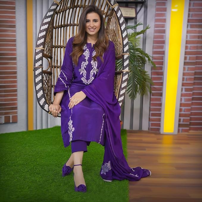 This set includes: 1 Kurta and 1 Pant with Dupatta || Work :- Embroidered || Neck Style:- Round V-Neck