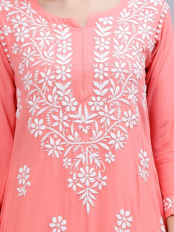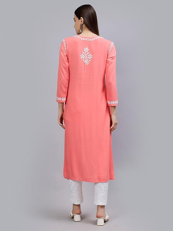 Chikan Hand Embroidered Lucknowi Chikankari Rayon Straight Kurta for Women