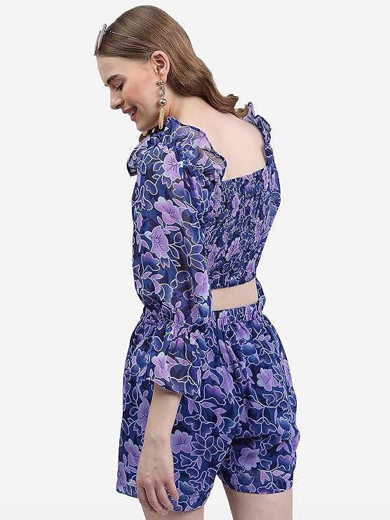 KETCH Polyester Women's Regular Fit Printed Threeforth Sleeve Co-Ord Set