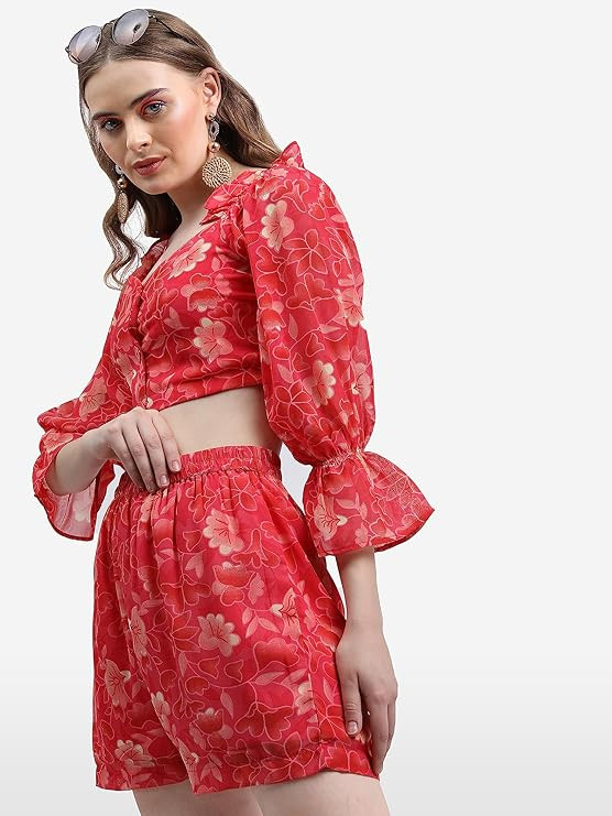 KETCH Women Polyester Regular Fit Printed Threeforth Sleeve Co-Ord Set