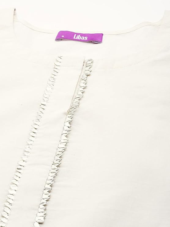 Libas Women Embroidered Cotton Straight Kurta & Palazzo With Dupatta