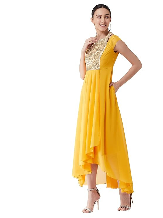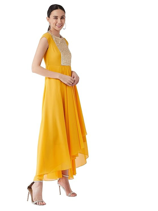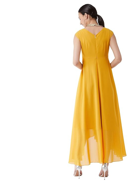 Style: Embellished|Fit: Relaxed Fit|Pattern: Solid|Neck: Round neck|Sleeves: Cap Sleeve|Length: Maxi