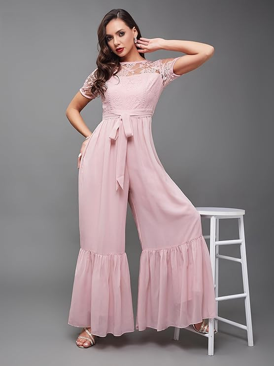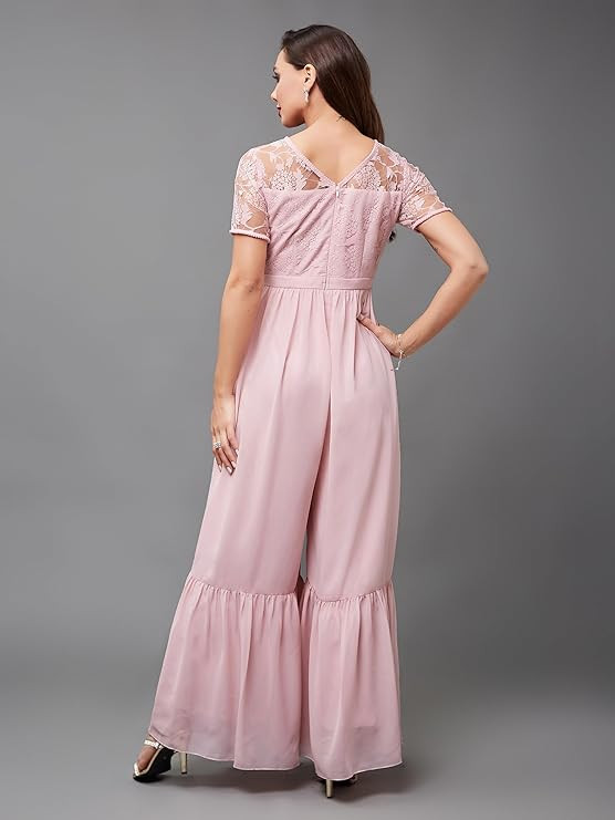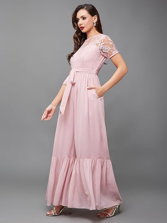 Style: Lace Overlaid | Pattern: Solid | Fit: Relaxed | Length: Regular | Closure: Zip | Neck: Round Neck | Sleeves: Short Sleeve | Pockets: 2 Side Pockets