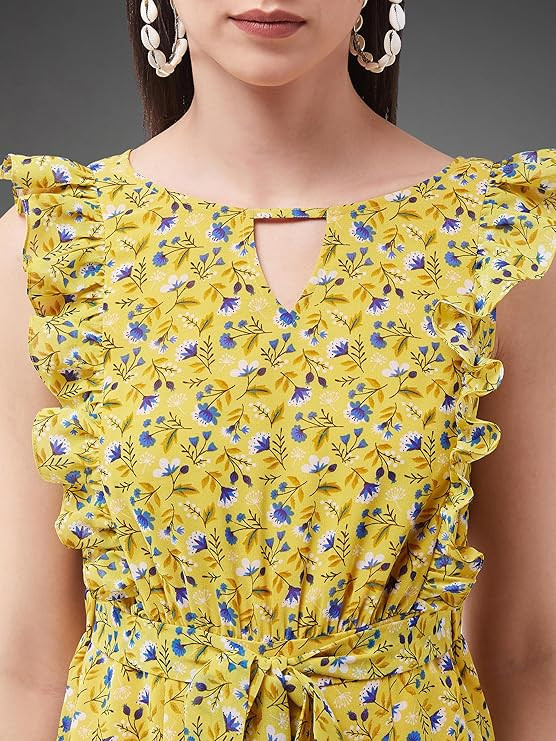Style: Wide Leg | Pattern: Floral | Fit: Relaxed Fit | Length: Regular | Neck: Round neck | Sleeves: Sleeveless