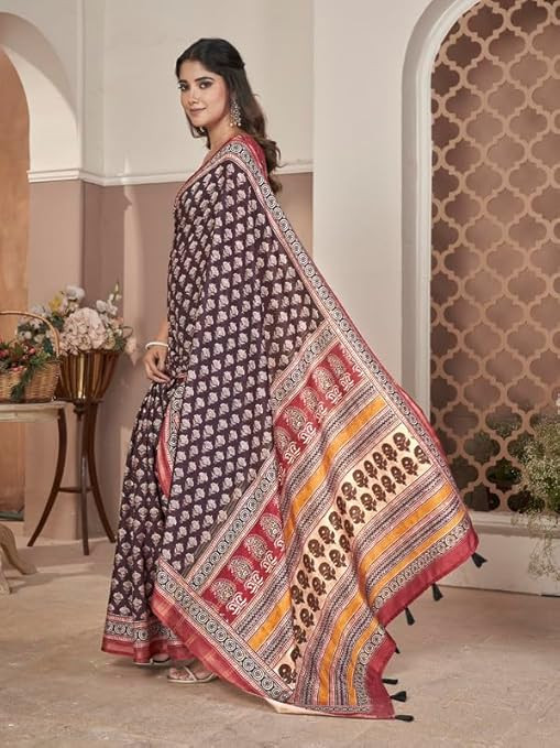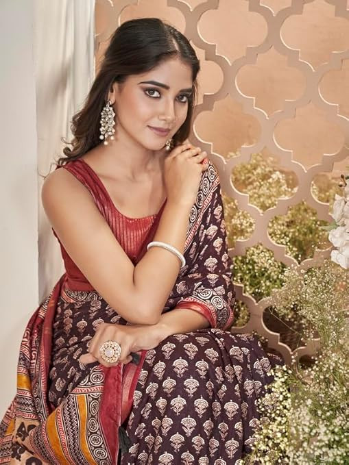 Rekha Maniyar Women's Cotton Blend Digital Printed Saree With Unstitched Blouse (MUSLINSILK_VOL1_PARENT)